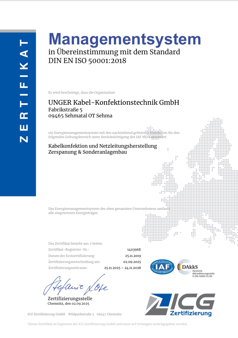Für alle Mitarbeiterinnen und Mitarbeiter der UNGER Kabel - Konfektionstechnik sind Qualität und Umwelt zwei untrennbare Seiten einer Medaille.