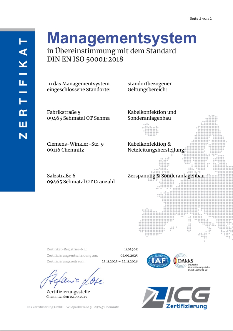 Zertifikat 9001:2016 Werke Sehma, Chemnitz, Cranzahl